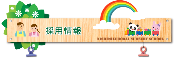 | 勤務先 | 西みずほ台保育園又は針ヶ谷保育園 要保育士資格(学歴・経験不問) |